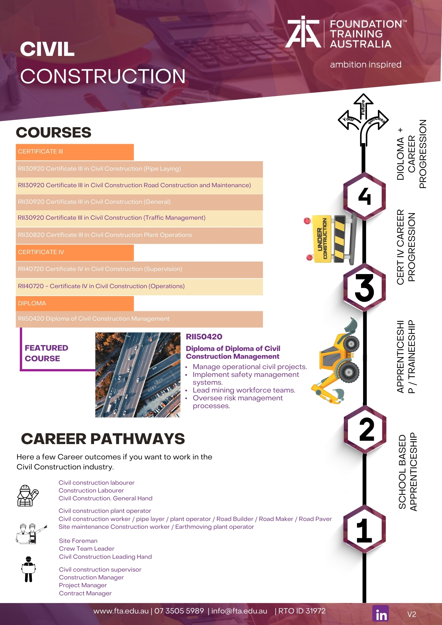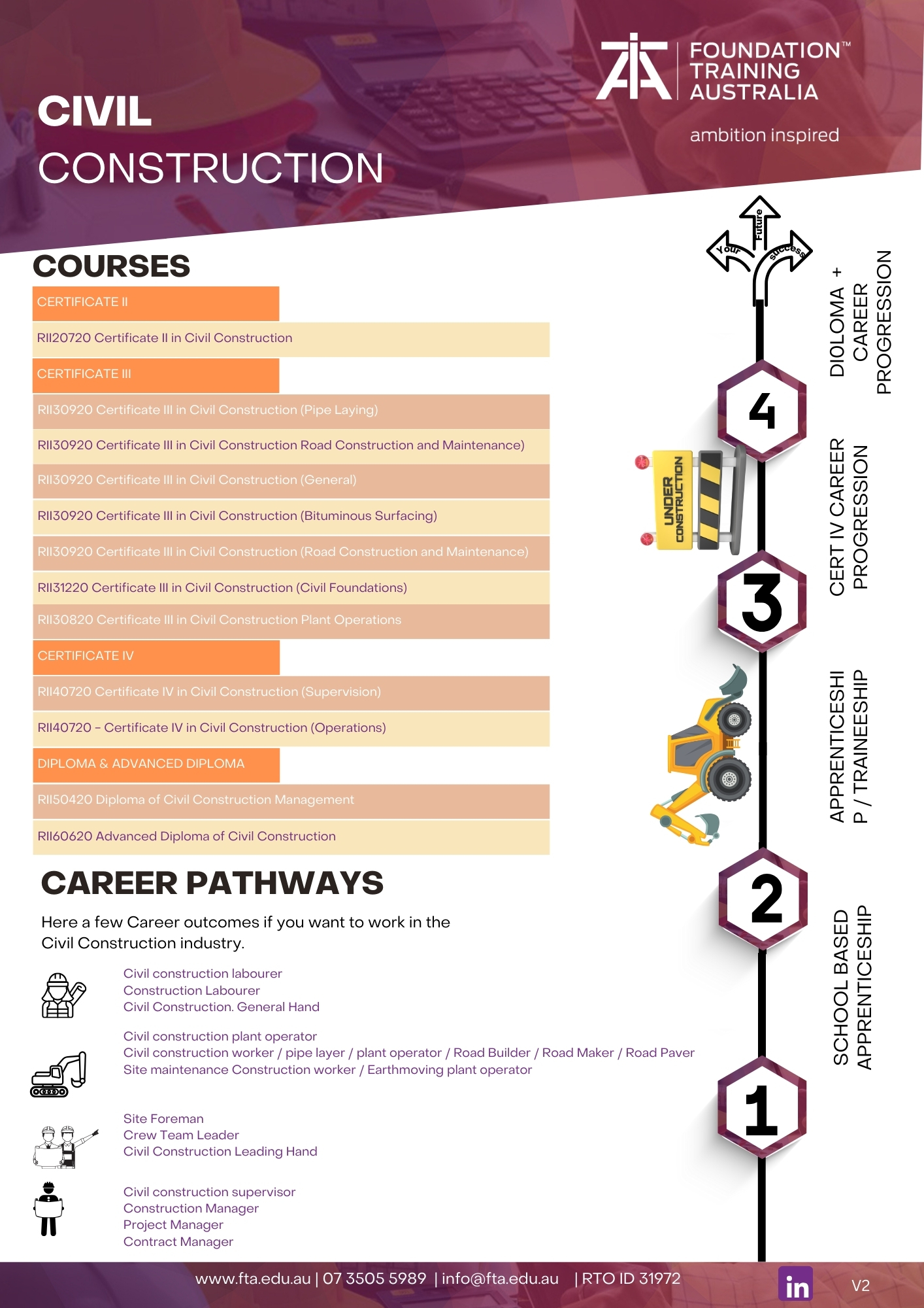 The RII30920 Certificate III in Civil Construction (Road Construction and Maintenance) can be completed as a traineeship and is a nationally accredited qualification.