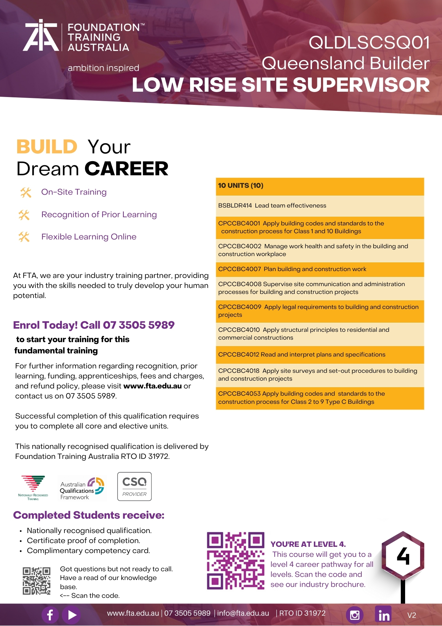 QLDLSCSQ01 Queensland Builder – Low Rise Site Supervisor