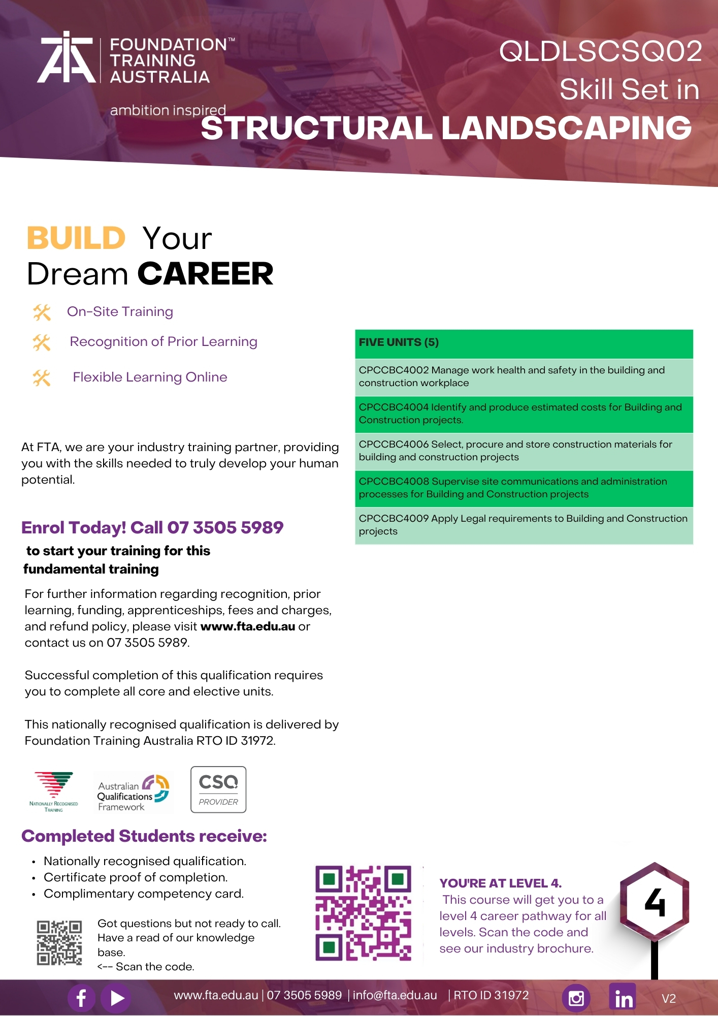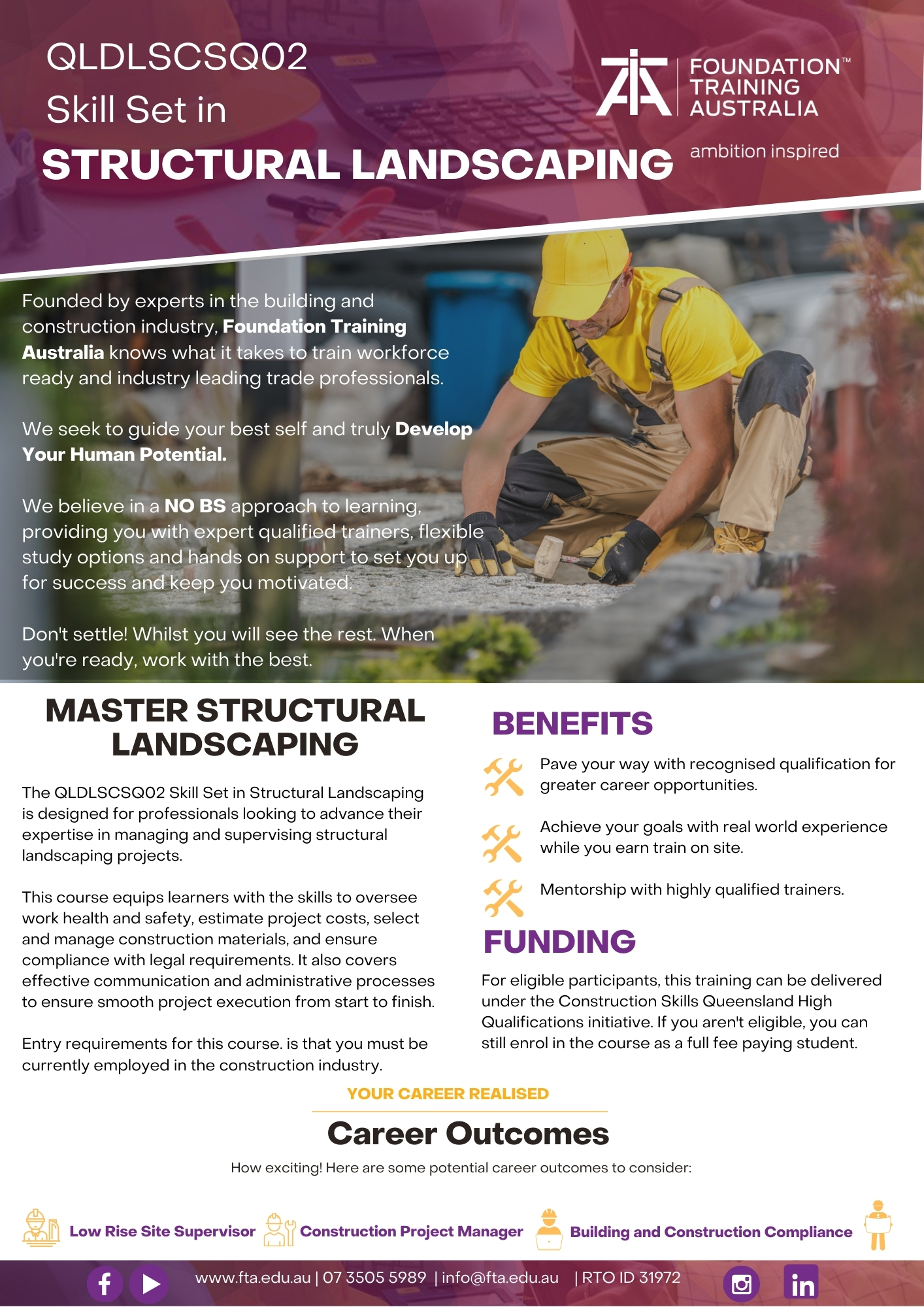 The QLDLSCSQ02 Skill Set in Structural Landscaping is designed for professionals looking to advance their expertise in managing and supervising structural landscaping projects.